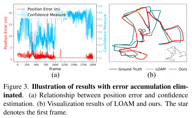 在QEOxford数据集上,将LOAM的平均位置误差从87.81m降低到4.48m,改善率94.9%