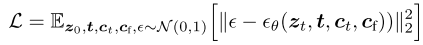 目标函数:沿用标准的扩散模型训练目标——预测添加到图像上的噪声: