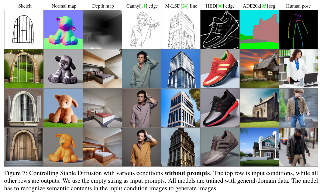 关键技巧——随机丢弃文本提示:训练时随机将50%的文本提示替换为空字符串。这迫使模型学会直接从条件图像中识别语义信息,而不是完全依赖文本提示。