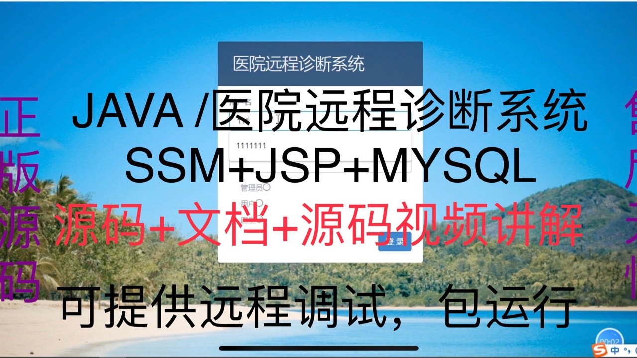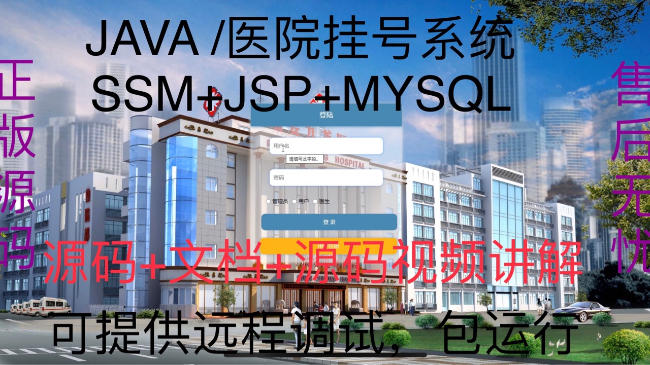 医院远程诊断管理系统|Java|SSM|JSP| 前后端分离 4⃣️:技术栈:Java、Mysql、SSM、Mybatis-Plus、JSP、jquery,html。3⃣️:开发环境:IDEA、JDK1.8、Maven、Mysql5.7+4⃣️:医生端:个人中心、医生信息管理、医生预约管理、系统管理。5⃣️:前台端:首页、医生信息、我的、论坛信息。管理员、用户、医生、前台。