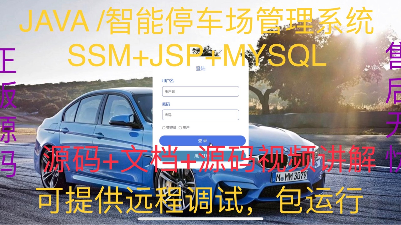 智能停车场管理系统|Java|SSM|JSP| 前后端分离 2⃣️:管理端:首页、个人中心、用户管理、车位信息管理、车位租用管理、车位退租管理、违规举报管理、论坛交流、系统管理。4⃣️:技术栈:Java、Mysql、SSM、Mybatis-Plus、JSP、jquery,html。4⃣️:前台端:首页、个人中心、车位信息、公告信息、我的、论坛交流、在线客服。3⃣️:开发环境:IDEA、JDK1.8、Maven、Mysql5.7+【重要1⃣️】前后端源码+万字文档+部署文档。