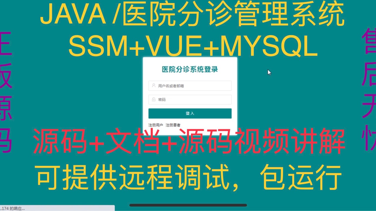 医院分诊管理系统|Java|SSM|VUE| 前后端分离 4⃣️:技术栈:Java、Mysql、SSM、Mybatis-Plus、VUE、jquery,html。2⃣️:管理端:用户管理、患者管理、科室信息管理、分诊管理、叫号管理、预检管理。3⃣️:开发环境:IDEA、JDK1.8、Maven、Mysql5.7+3⃣️:用户端:首页、个人中心、科室信息管理、分诊管理。4⃣️:前台端:首页、个人中心、科室信息、分诊。【重要1⃣️】前后端源码+万字文档+部署文档。【重要2⃣️】正版源码有问题包售后。【重要3⃣️】可复制品不支持退换货。1⃣️:架构: B/S、MVC。