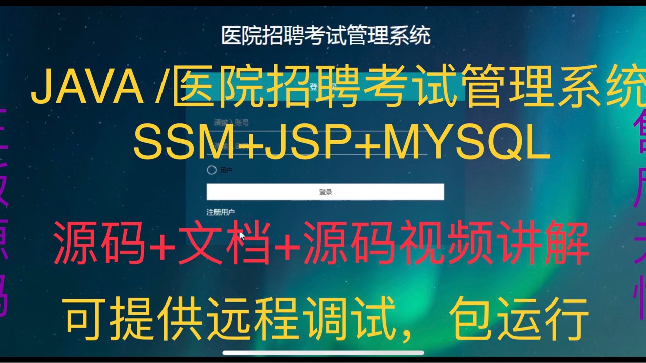 医院招聘考试管理系统|Java|SSM|JSP| 前后端分离 4⃣️:技术栈:Java、Mysql、SSM、Mybatis-Plus、JSP、jquery,html。4⃣️:前台端:首页、医院简介、在线报名、论坛信息、试卷列表、我的、购物车。3⃣️:开发环境:IDEA、JDK1.8、Maven、Mysql5.7+