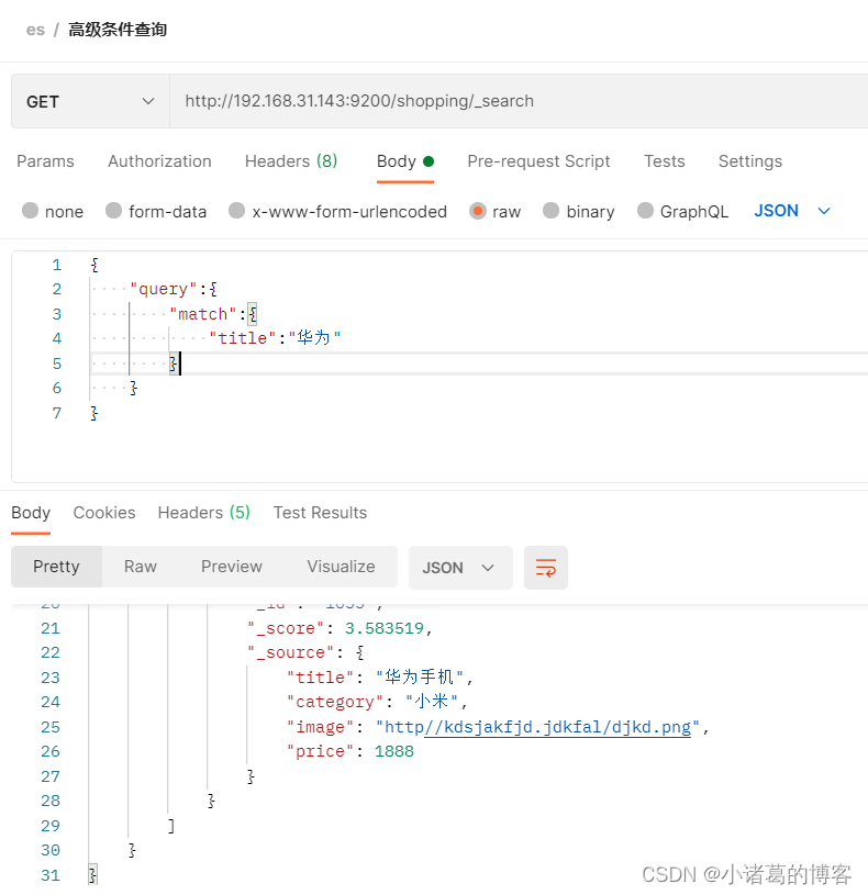 例:shopping/_search?q=title:华为