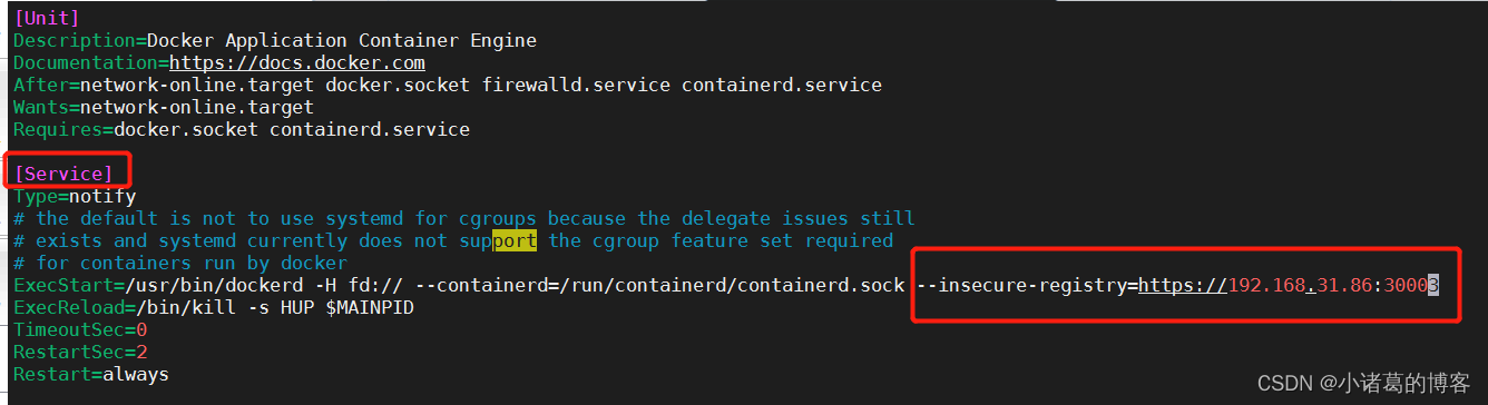 在Service配置组里添加 --insecure-registry=https://xxxx:xxxx