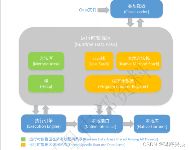 销毁时间。如下图所示,可以分为两大部分,线程私有区和共享区。下图是根据自己理解画的一个
