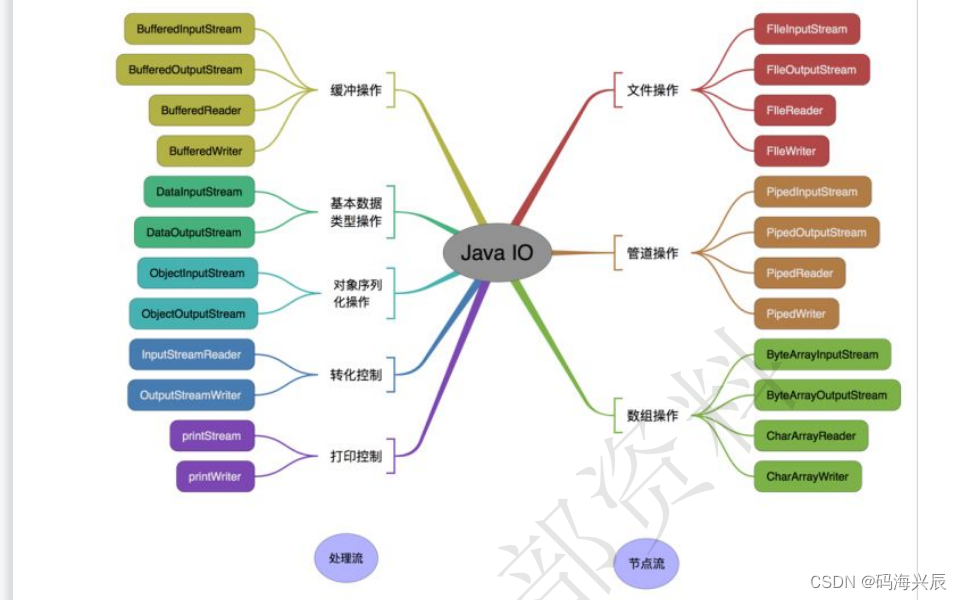 按照流的角色划分为节点流和处理流。