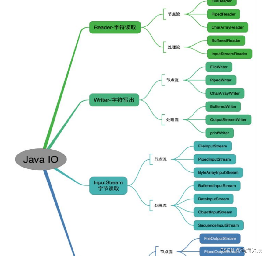 InputStream/Reader: 所有的输入流的基类,前者是字节输入流,后者是字符输入流。