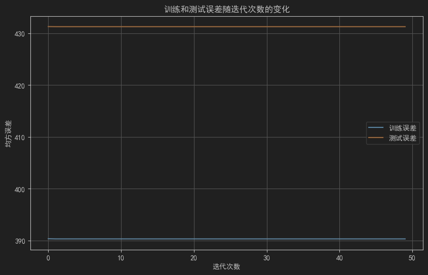 - 记录每次迭代的训练误差和测试误差,以及模型系数。