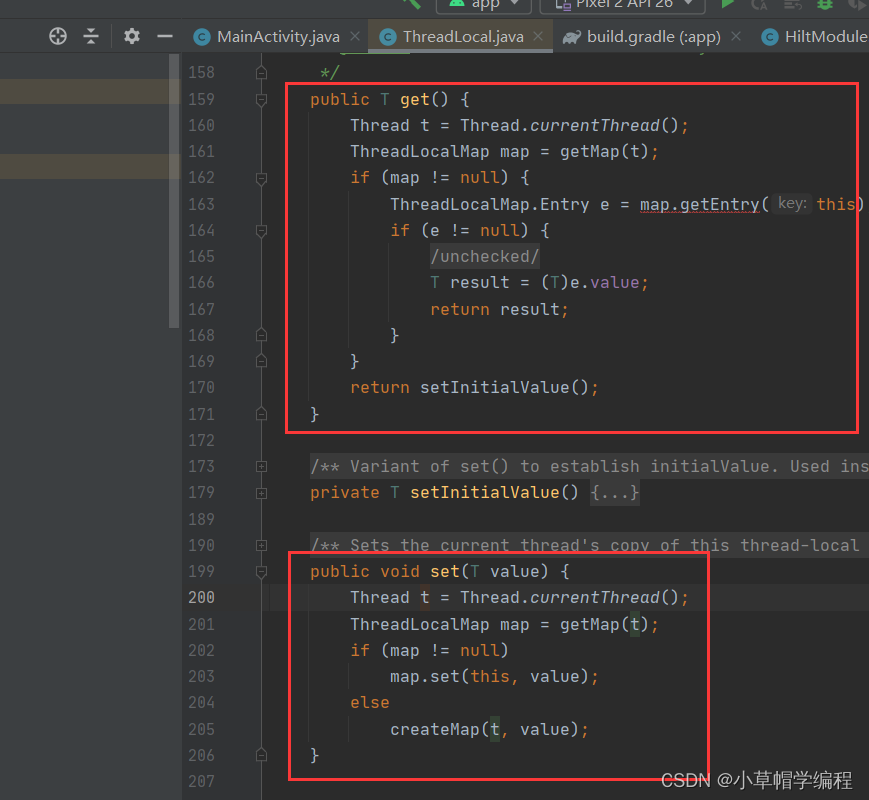 这里要简单讲一下ThreadLocal是如何保证线程数据私有化的。这要从它的get/set方法说起