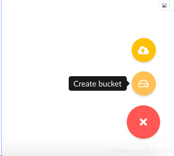 进入系统后,我们先要点击右下角的“+”按钮,创建一个文件桶(输入名称后,回车即可),在上传文件到这个文件桶中。Create bucket(创建文件桶)、Upload file(上传文件)。