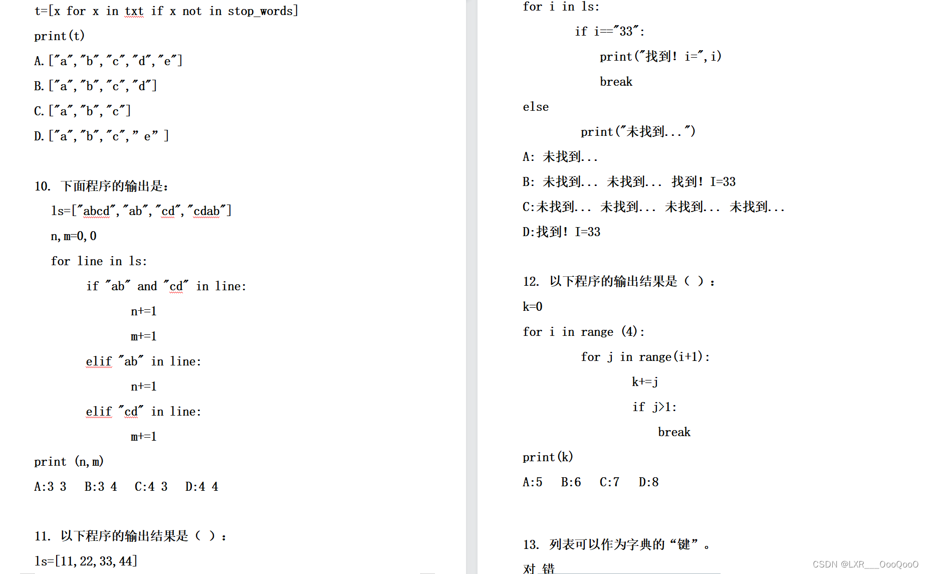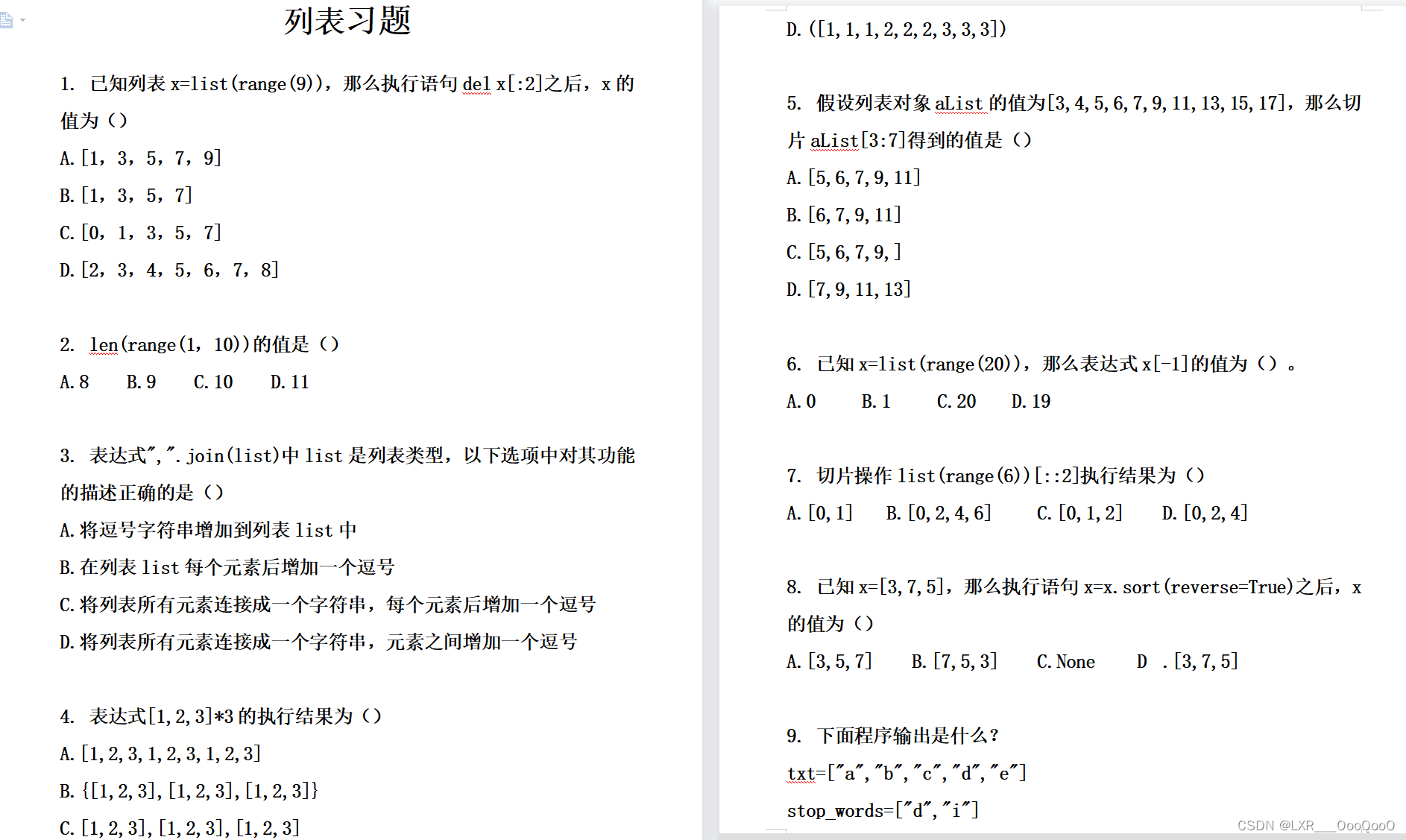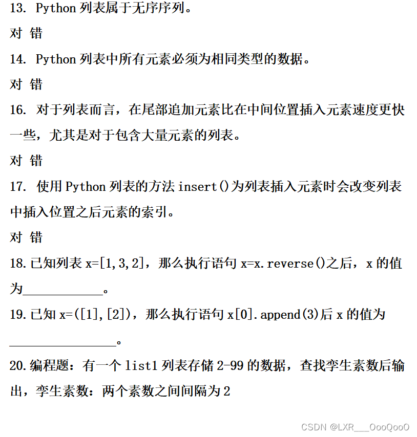 本文是一篇关于Python基础的练习题目,包含选择题和编程题。涉及的知识点包括数据类型判断、列表操作和有序序列理解。