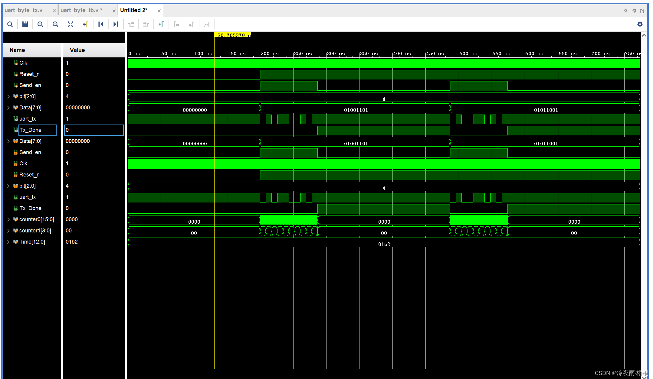 该博客详细介绍了UART(通用异步收发传输器)的字节传输模块设计,包括9600到115200不同波特率的设置,以及起始位、数据位、停止位的传输过程。通过Verilog代码实现并进行了仿真,仿真结果符合预期。