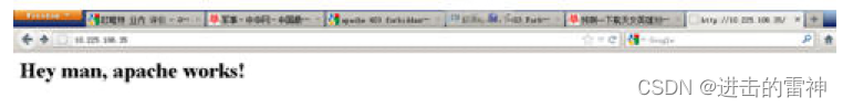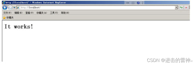 装完后,在Apache2.2启动的前提下,打开一个ie输入http://localhost,你将会得到这样的一个页面,就说明你的Apache的安装是成功的。