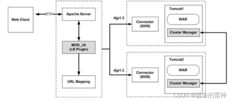 ü Apache载入一个额外的插件,用于连接tomcat。