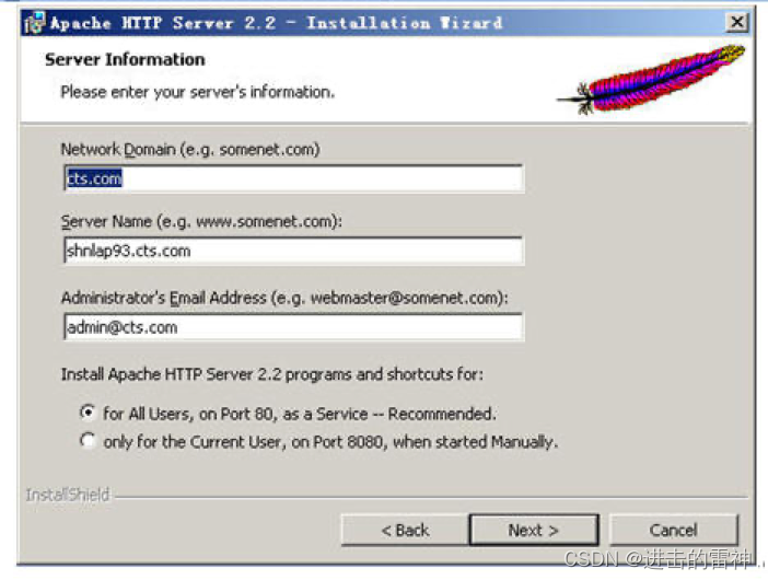 这边的server name你们要填入自己的server的真实名,不能用我这个,这个servername如:shnlap93.cts.com只能够我用,这个名称是全局唯一的,和你的IP一样。