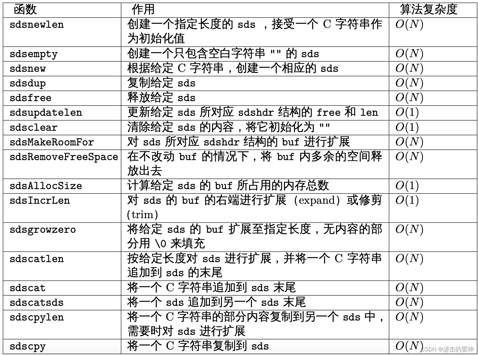 sds 模块基于 sds 类型和 sdshdr 结构提供了以下 API :