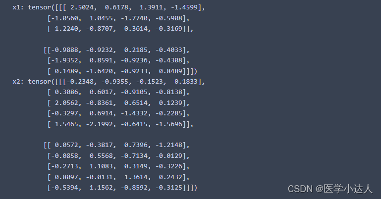 x1 = torch.randn(2, 3, 4) # 形状 (batch_size, seq_len1, feature_dim)