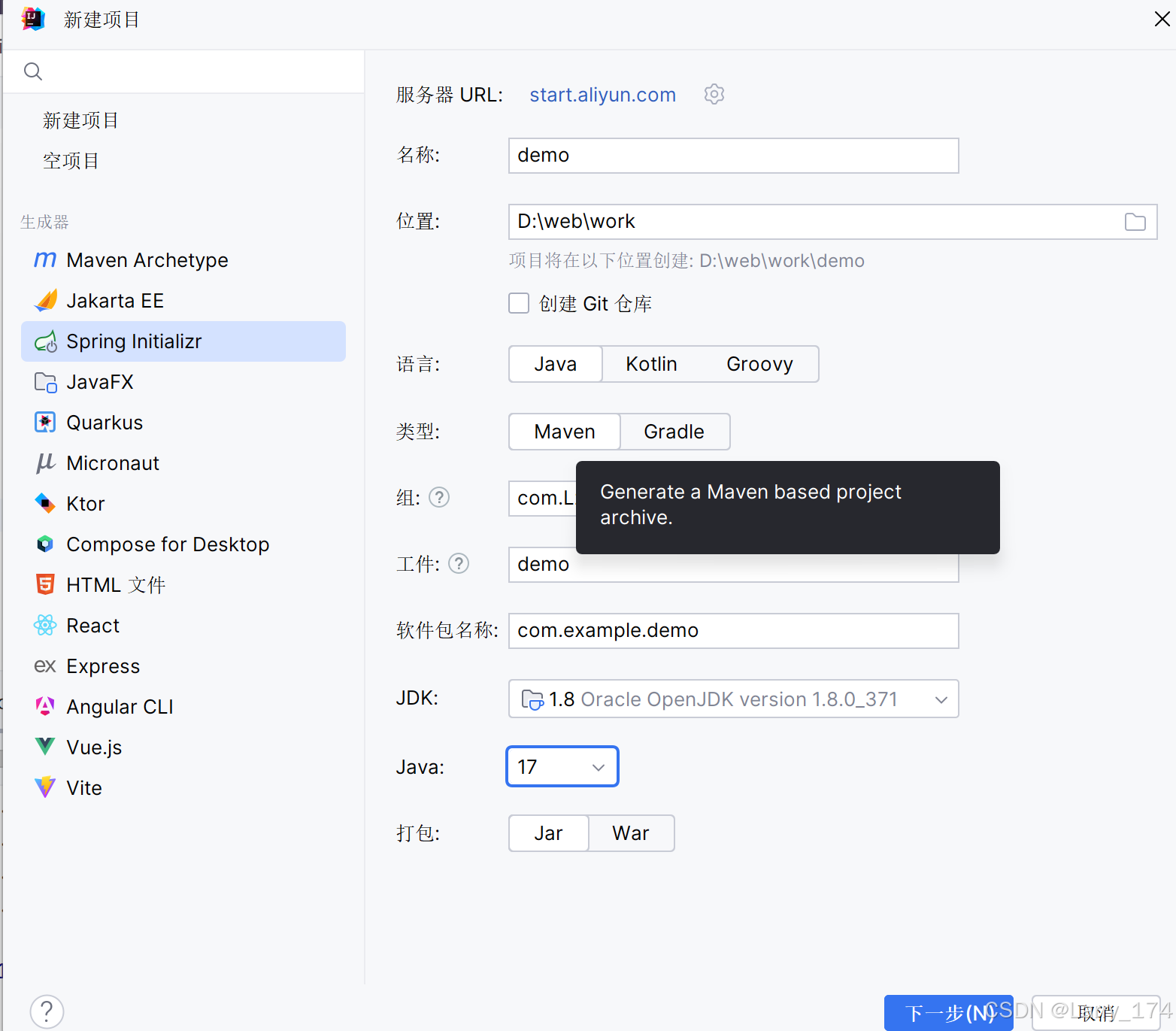 - Artifact: 输入项目名,这将作为Maven的Artifact ID。