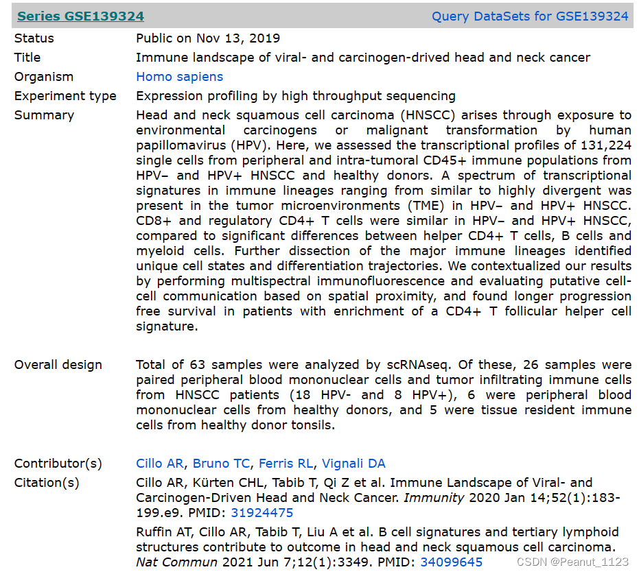 例 分析头颈部鳞状细胞癌组织在感染或未感染人乳头瘤病毒免疫谱系的转录特征