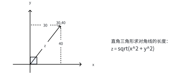 1、本题当中应用到了简单的数学知识:直角三角形求斜边长度。