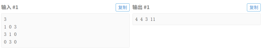 · 输入格式:第1行是A国参与决赛项目的天数n,其后n行,每一行是该国某一天获得的金、银、铜牌数目,以一个空格分开。