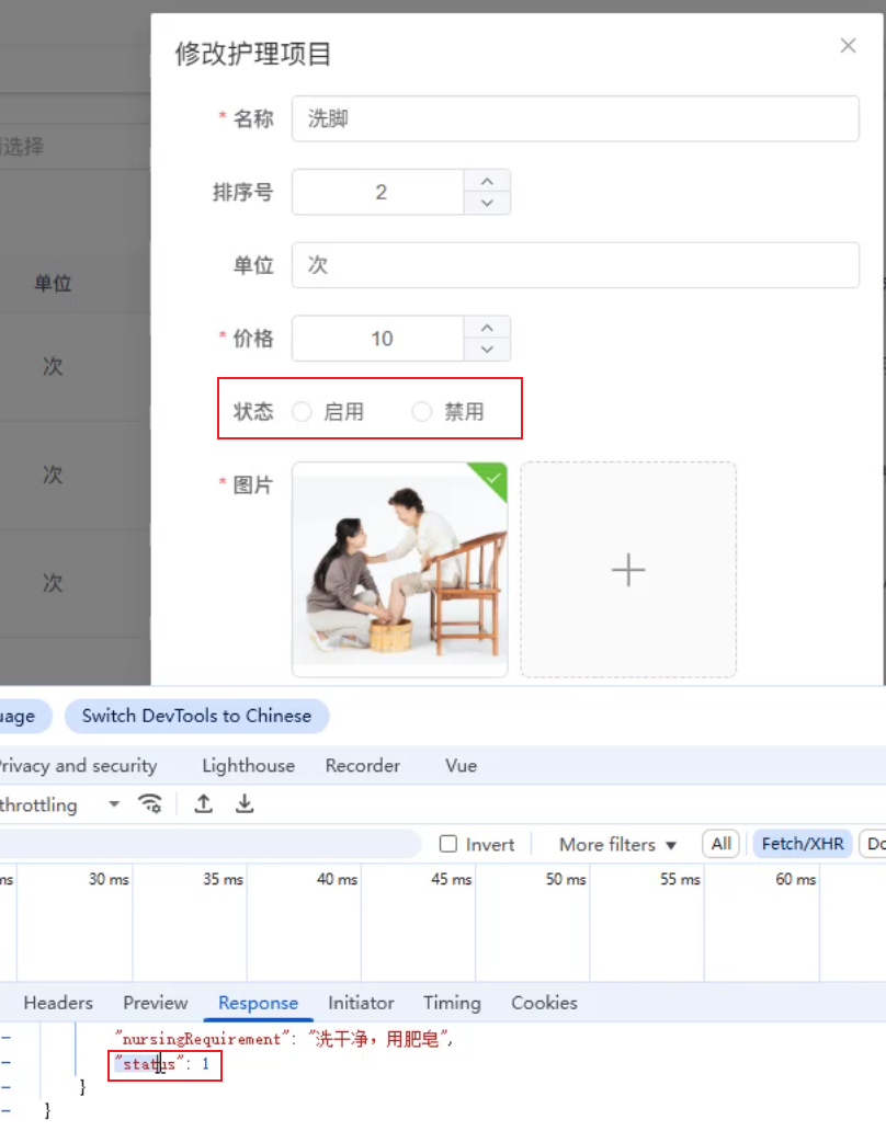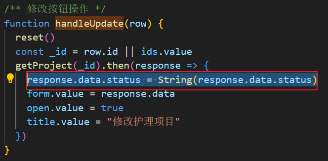 然后把表单项绑定的options数组换成我们定义好的 nursing_project_status 即可