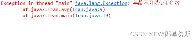 上面代码运行时没有任何问题,但是大家想一想:人的年龄可能是负数吗?这类问题编译器是无法识别的,但很明显不符合常理,那么,对于这类问题即可通过自定义异常对它们进行处理。Java中可以通过继承Exception类自定义异常类。