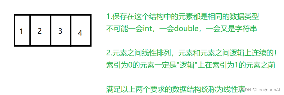 线性表的规范:都是保存单个元素的集合,集合中元素的类型都相同,元素的逻辑结构是连续的