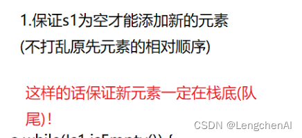 首先检测s1中是否有元素,如果有元素则将s1中元素依次出栈,入栈s2中