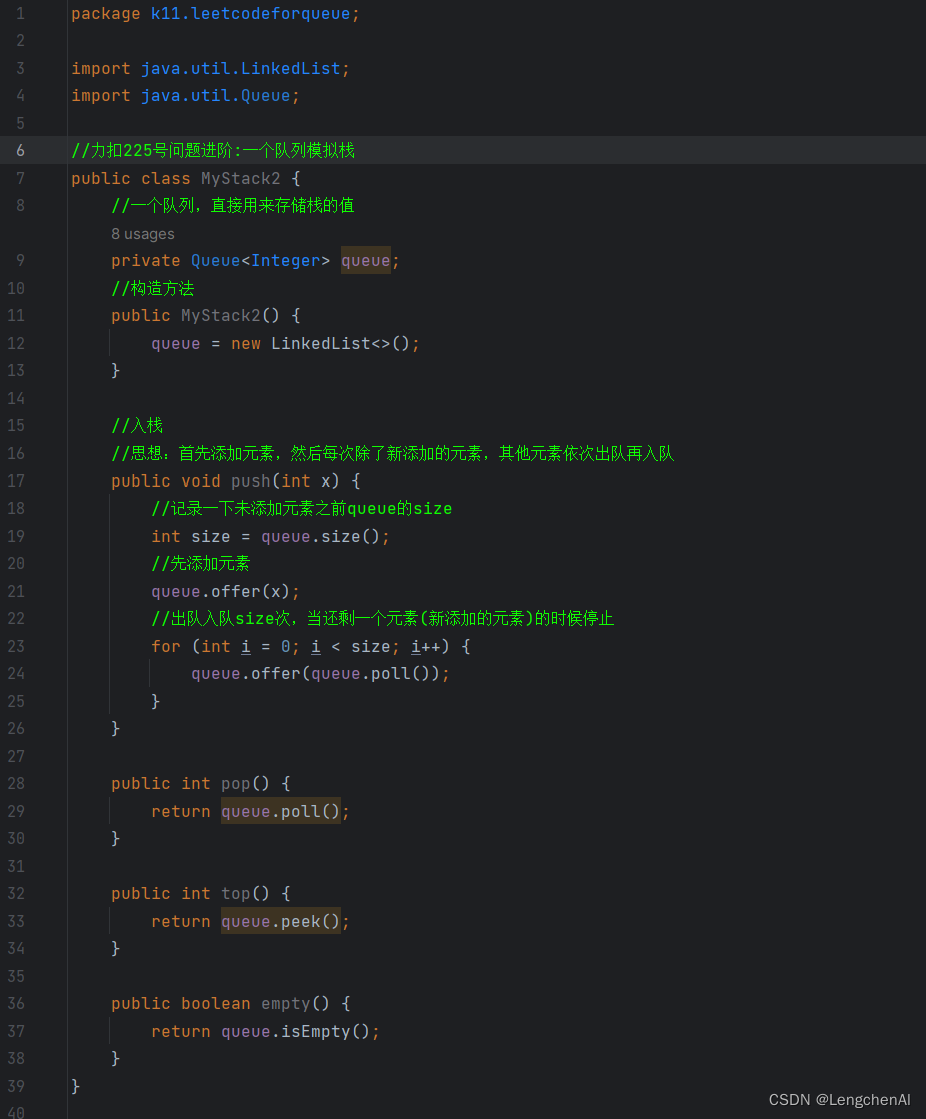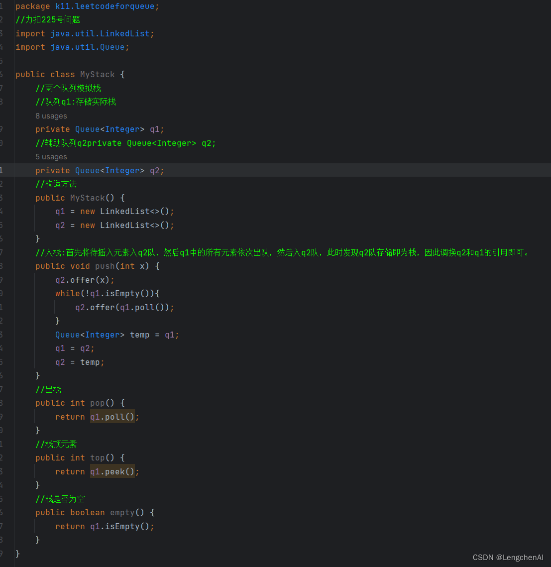 2. 两个队列来模拟实现栈:225. 用队列实现栈 - 力扣(Leetcode)