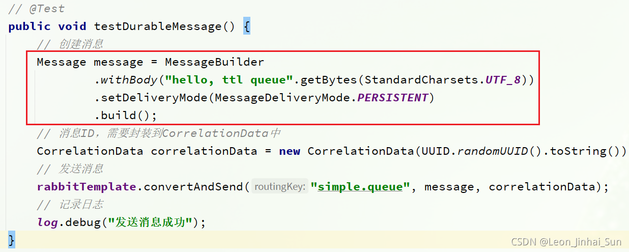 默认情况下,SpringAMQP发出的任何消息都是持久化的,不用特意指定。