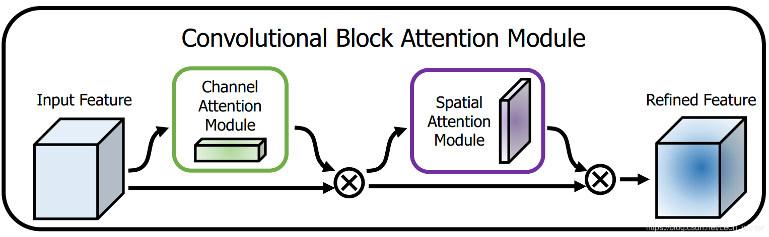 看名字,应该觉得这俩attention机制应该用于CNN,介绍这channel attention和spatial attention用一个轻量级的CBAM(Convolutional Block Attention Module, Sanghyun Woo et al., 2018),CBAM原理图如下: