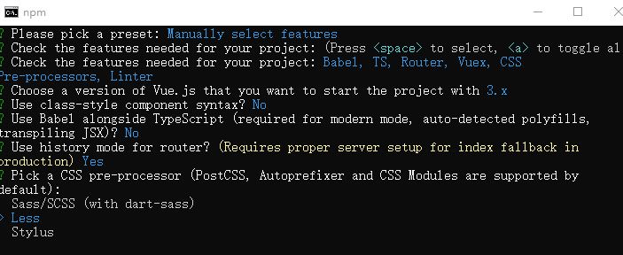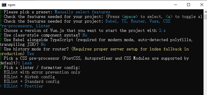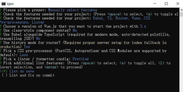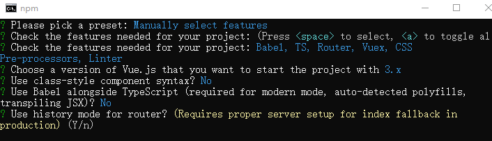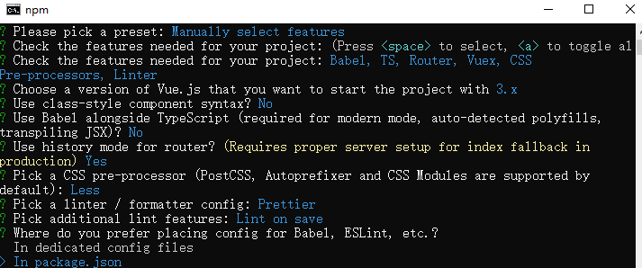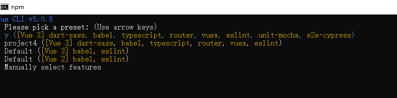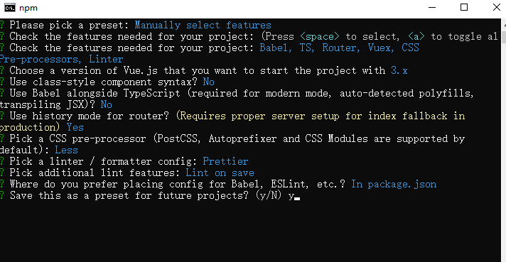 将其保存为未来项目的预设,这里选择y,后面创建就不需要再选择一次