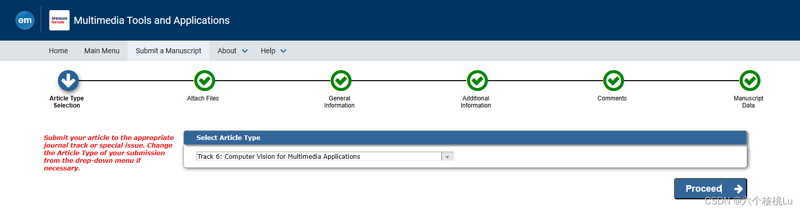 第一步:将您的文章提交到适当的期刊轨道或特刊。 如有必要,从下拉菜单中更改您提交的文章类型。