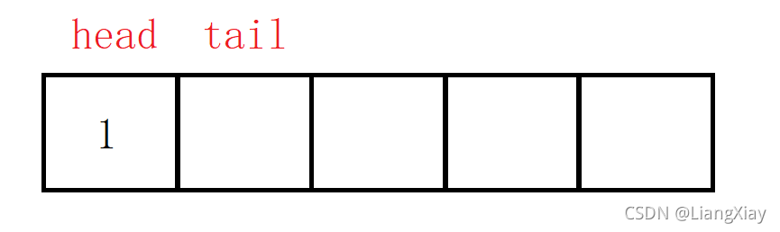 而当不断插入数据时,tail向后移动,但可以看出,tail表示的是队尾的下一块空间,而非直接表示队尾。