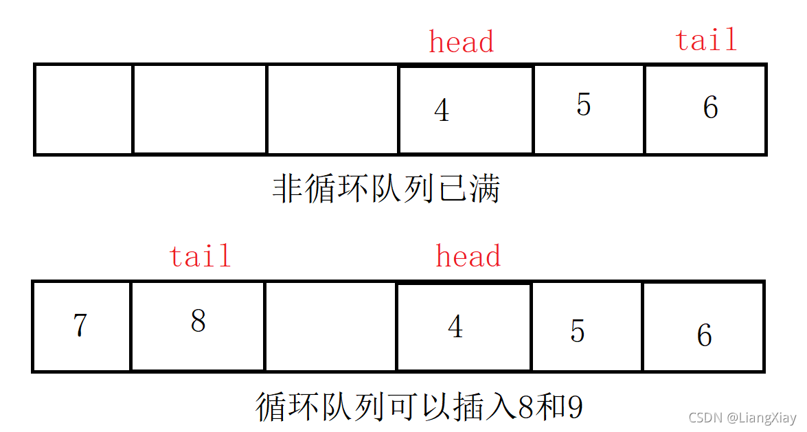 循环队列可以循环使用队列之前用过的空间,普通队列的头元素前的节点不能再使用,而循环队列可以在队列没有满之前循环的使用空间。