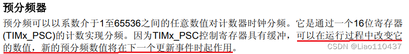 预分频器的值为0时也就是不分频,为1时就是2分频,依次类推