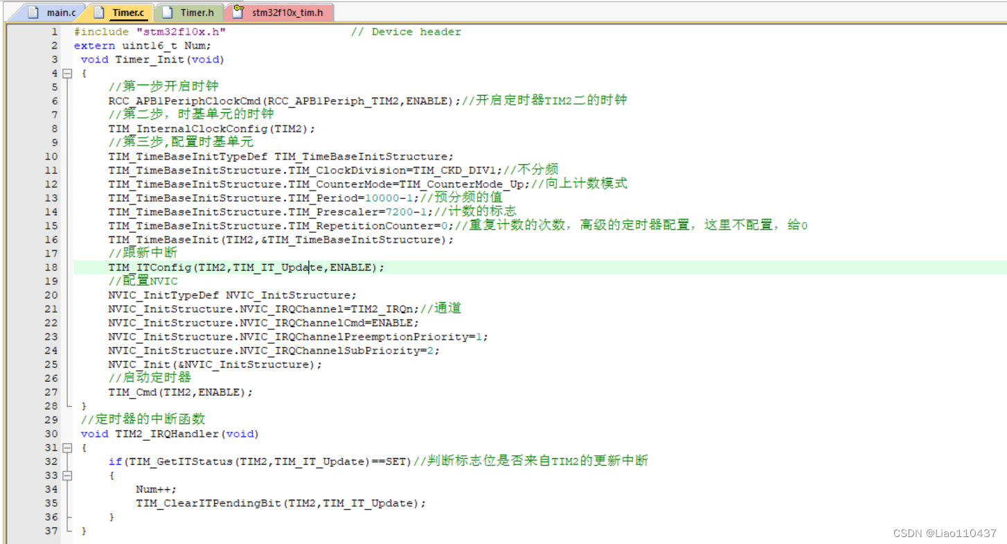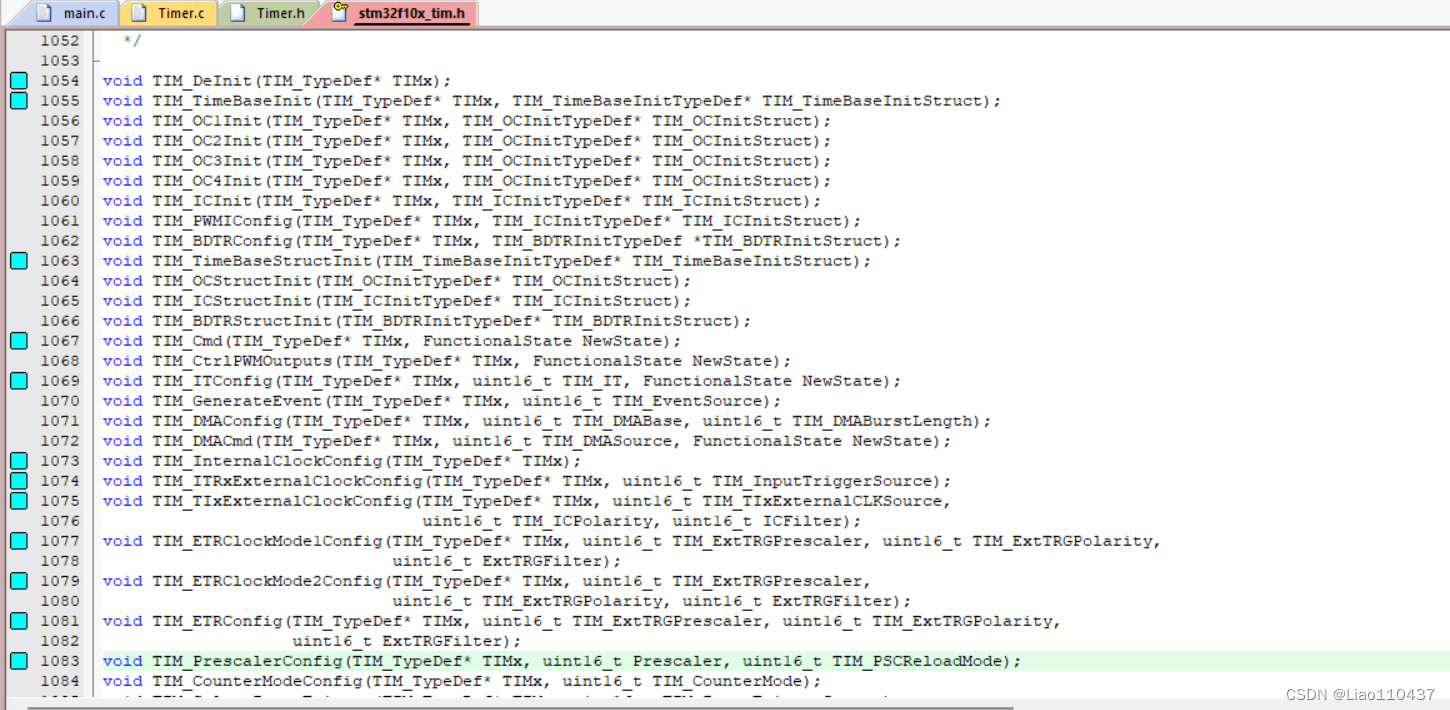 带有蓝色书签的就是定时中断需要用到的代码,可以自己在固件库手册查看。