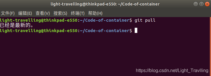 现在要更新仓库里面的东西,直接进入Code-of-container文件夹下执行git pull