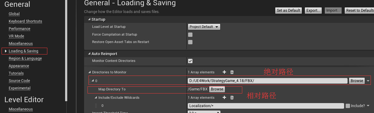 可以指定多个绝对和相对路径,例如分别存放角色和怪物等fbx文件目录