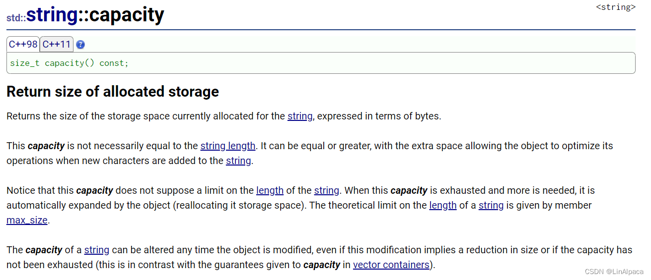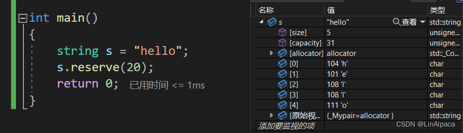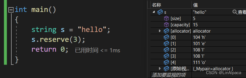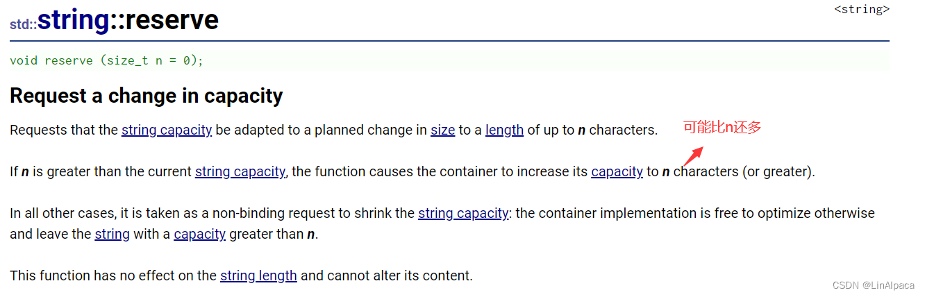 🍿使用 reserve 能够更改 string 的 capacity,不改变size。若我们提前知道需要使用的大小,可以提前扩大 string 的容量,避免重新开辟空间而引发拷贝所带来的消耗。并且 reserve 只能扩容而无法更改字符串内容,即不能缩容。