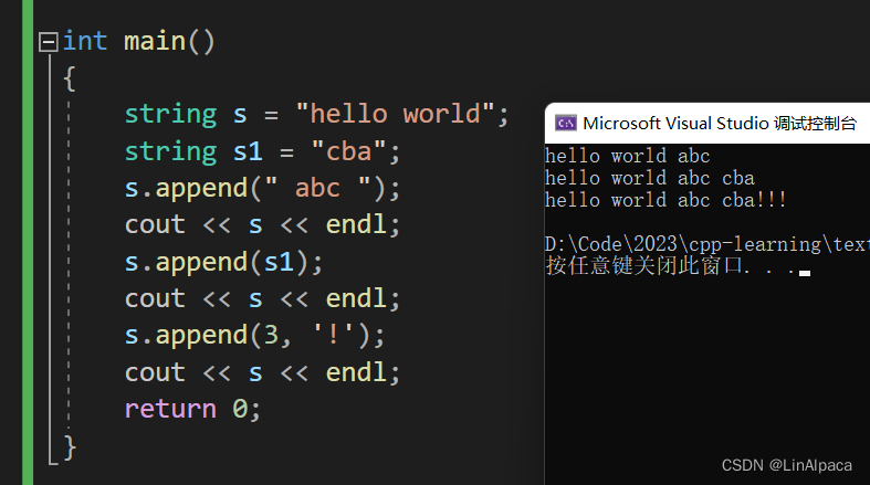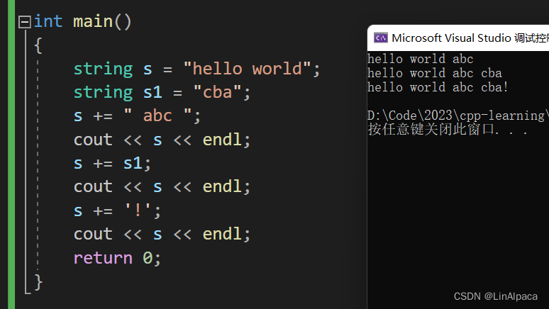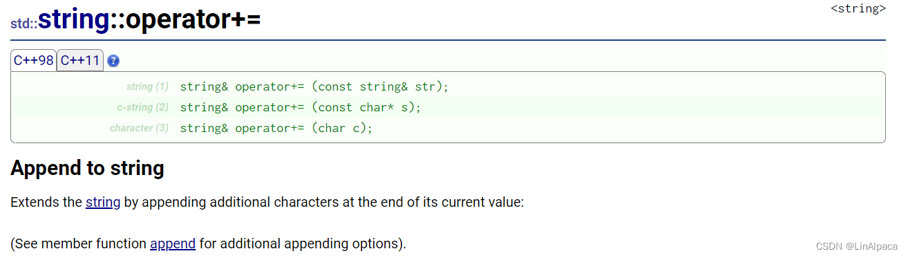 🍿其实上面的 push_back 和 append 都可以用 += 代替,既可以插入字符也可以插入字符串和 string。只不过没有限定插入长度而已。
