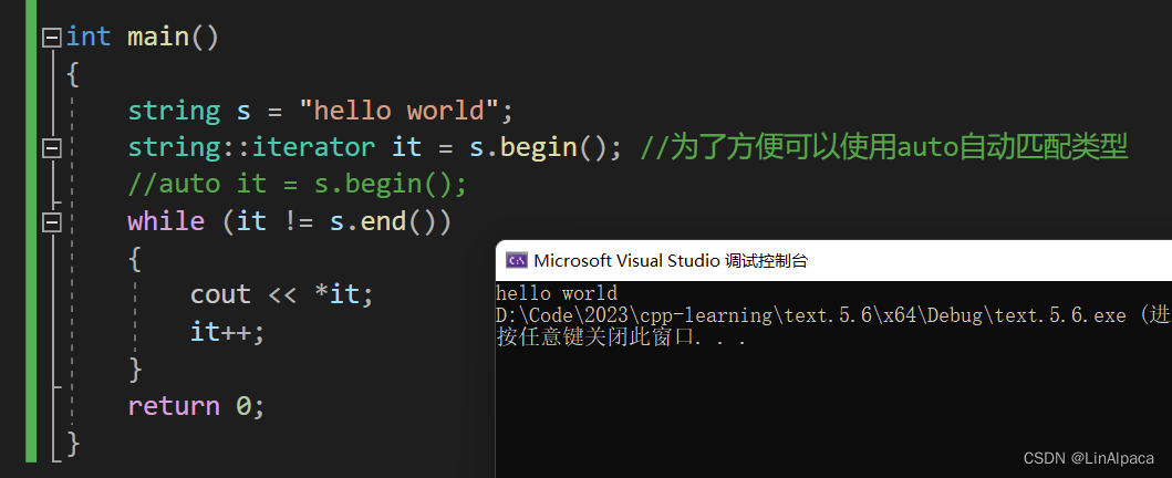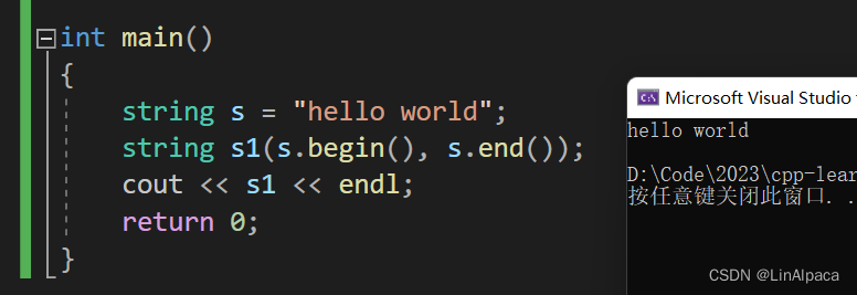 🍿对初学者而言,可以将其粗略地理解成指针。我们可以通过 begin 拿到字符串的第一位,end 拿到最后一个元素的下一位。