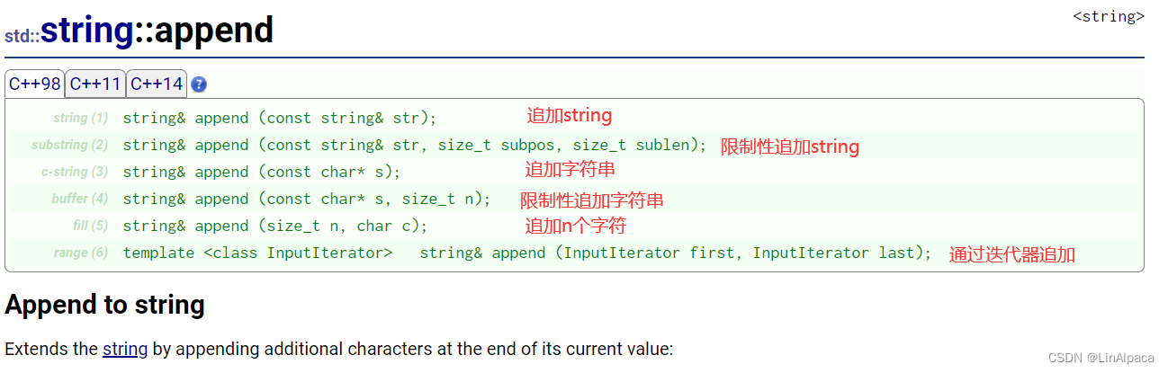 🍿与 push_back 不同,append 往 string 结尾插入可以是多种多样的。
