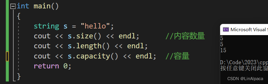 cout << s.capacity() << endl; //容量