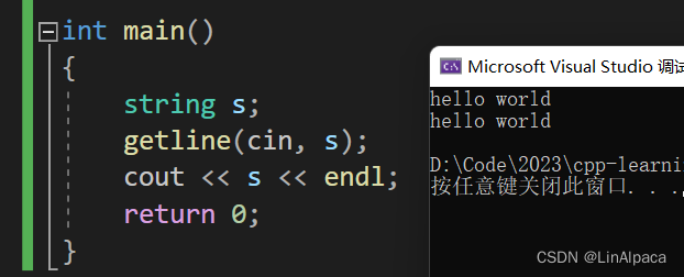 🍿在使用 cin 输入时,空格和换行都会被 cin 当作是分隔符,若我们想只以换行作为识别的标志,则需要使用 getline。