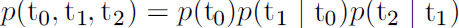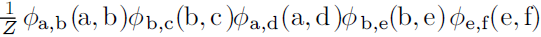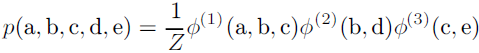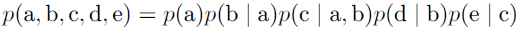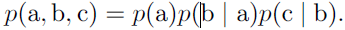 For example, suppose we have three random variables: a, b and c. Suppose that a influences the value of b and b influences the value of c, but that a and c are independent given b. We can represent the probability distribution over all three variables as a product of probability distributions over two variables: