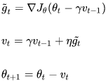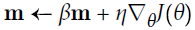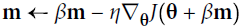 represents the gradient at the point located at θ + βm, Note: θ*βm<0).