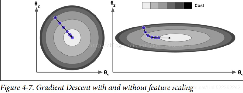 Figure 11-7. AdaGrad versus Gradient Descent: the former can correct its direction earlier to point to the optimum
